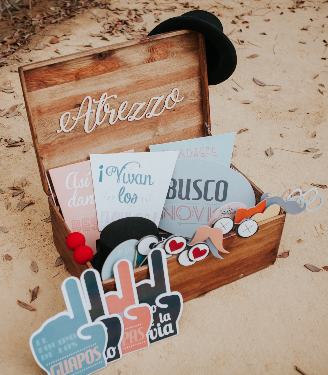 Desde el primer momento, el rincón se convierte en un imán para los invitados. Cogen el atrezzo, posan y se llevan sus fotos impresas al instante. De cada foto pegamos una copia en el álbum y animamos a los invitados a dejar un mensaje.