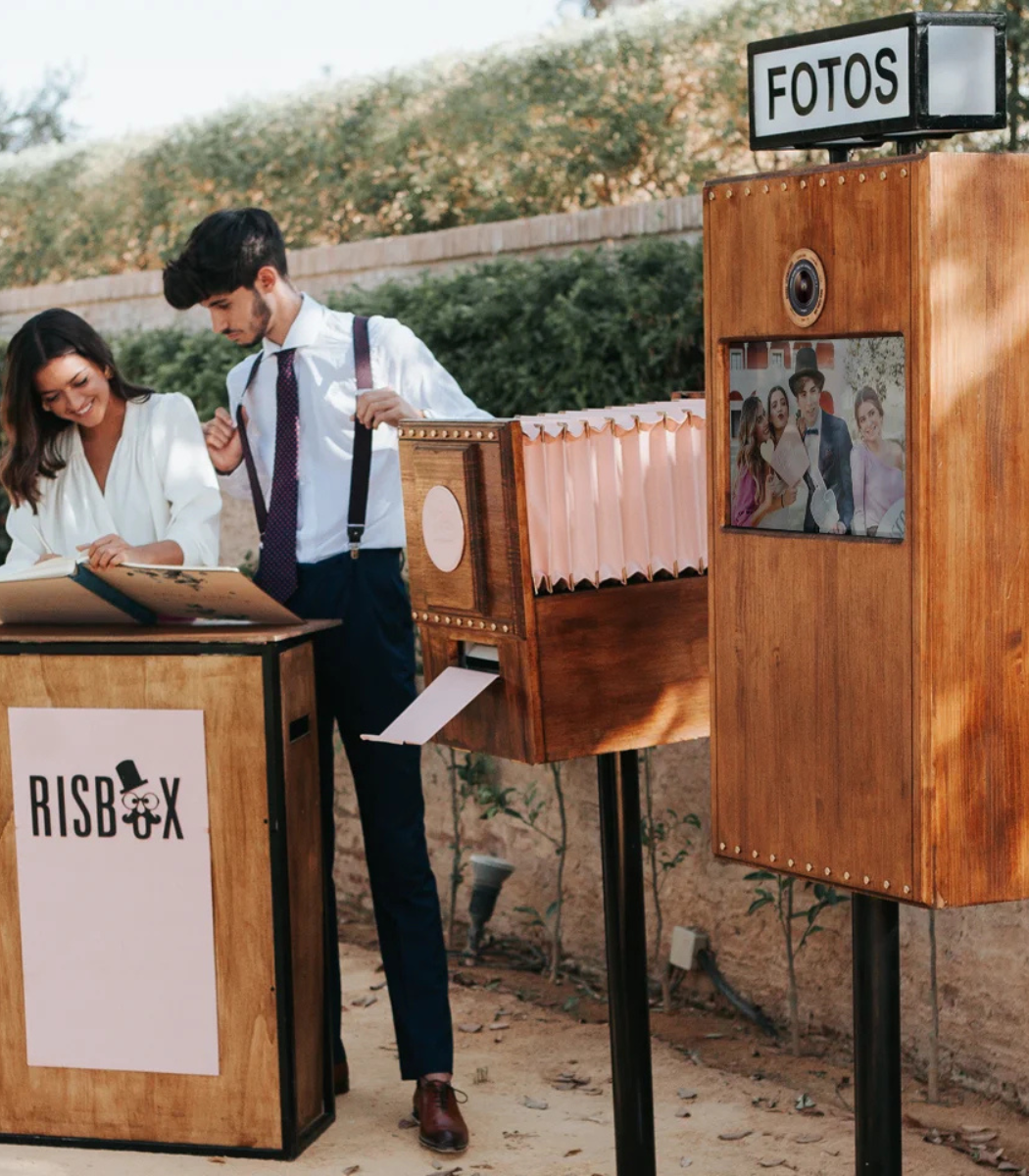 El pack Rincón Vintage incluye la experiencia del fotomatón vintage con decoración en el photocall para crear el rincón de vuestra boda donde todo el mundo quiera hacerse fotos. Durante tres horas, vuestros invitados se llevan todas las fotos impresas como recuerdo. Sin límite.